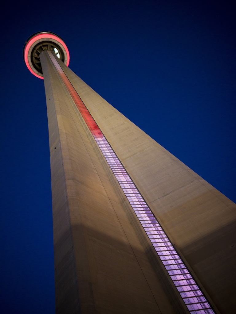 The CN Tower in Toronto, Canada captured from the base of the tower.